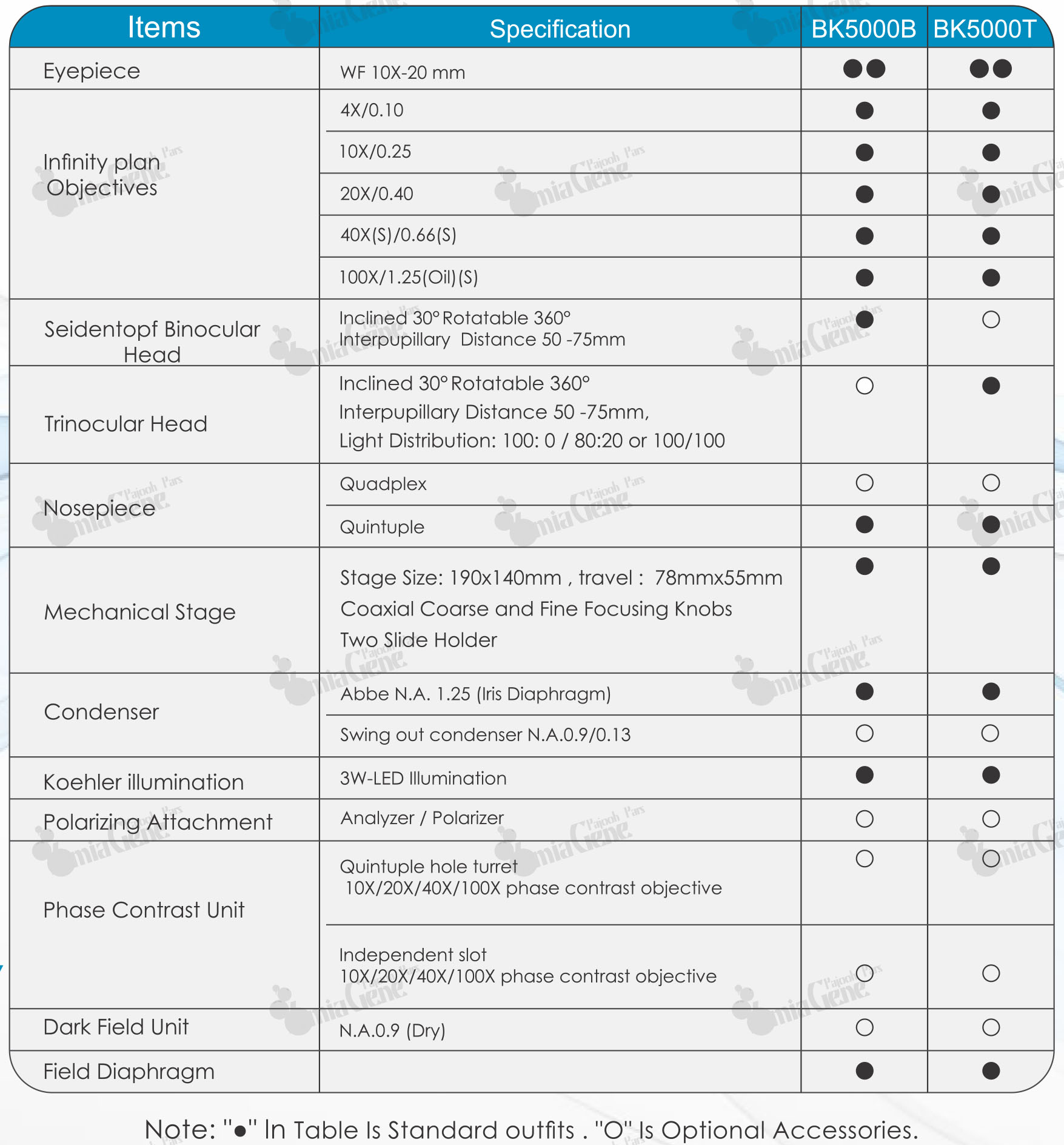 در بازار میکروسکوپ های آزمایشگاهی، مدل های مختلفی با ویژگی های مشابه وجود دارند. اما میکروسکوپ BK 5000 با داشتن سیستم اپتیکی بینهایتی، لنزهای Plan Achromatic، کندانسور Abbe و سیستم دارک فیلد از سایر مدل ها متمایز است.